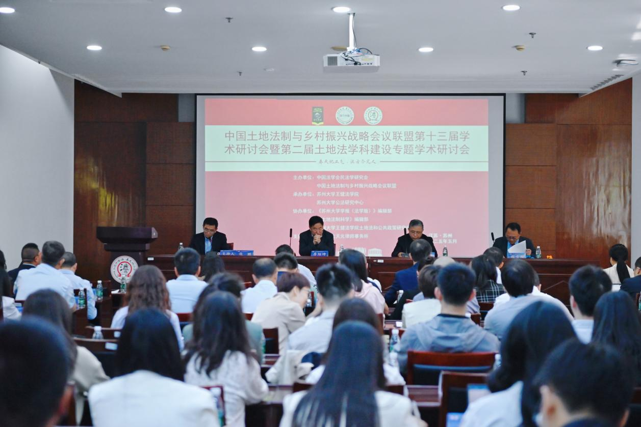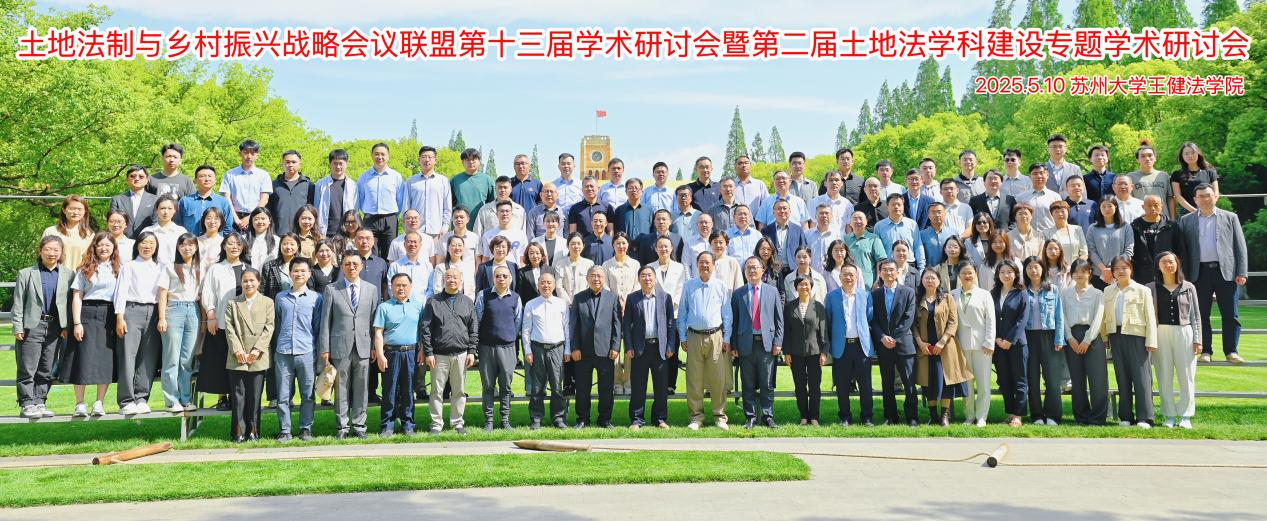 2025年5月9日至11日,由中国法学会民法学研究会、土地法制与乡村振兴战略会议联盟主办,苏州大学王健法学院、苏州大学公法研究中心承办,《苏州大学学报(法学版)》编辑部、《土地法制科学》编辑部、苏州大学王健法学院土地法律与公共政策研究中心协办,江苏益友天元律师事务所支持举办的“土地法制与乡村振兴战略会议联盟第十三届学术研讨会暨第二届中国土地法学科建设专题学术研讨会”在苏州大学王健法学院成功举办。来自中国人民大学、吉林大学、广东外语外贸大学、西南政法大学、西北政法大学、中南财经政法大学、郑州大学、中央财经大学、东南大学、大连海事大学、中南大学、天津大学、华南理工大学、安徽大学、华南农业大学、黑龙江大学、河南大学、扬州大学、江苏大学、澳门大学和苏州大学等高等院校与科研院所的120多位专家学者莅临本次会议。