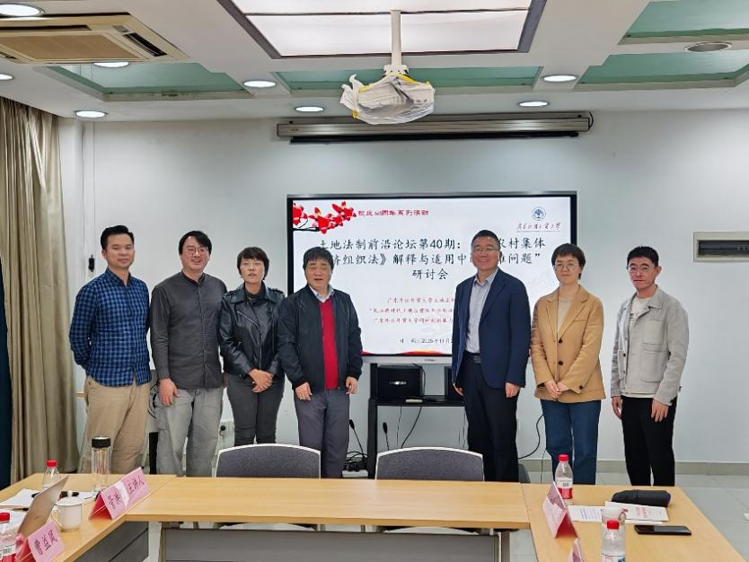 2025年11月21日,由广东外语外贸大学土地法制研究院、“民法典时代土地治理体系公私法协同机制研究”广外科研创新能力提升专项计划研究团队共同举办的校庆60周年系列活动“土地法制前沿论坛”第40期——“《农村集体经济组织法》解释与适用中的疑难问题”研讨会,在北校区第八教学楼612会议室顺利举行。本次研讨会特邀吉林大学农业农村法治研究院执行院长管洪彦教授担任主讲嘉宾。广外土地法制研究院院长高飞教授、研究院专职研究人员和部分博士生和硕士生共同参与研讨。会议由高飞教授主持。