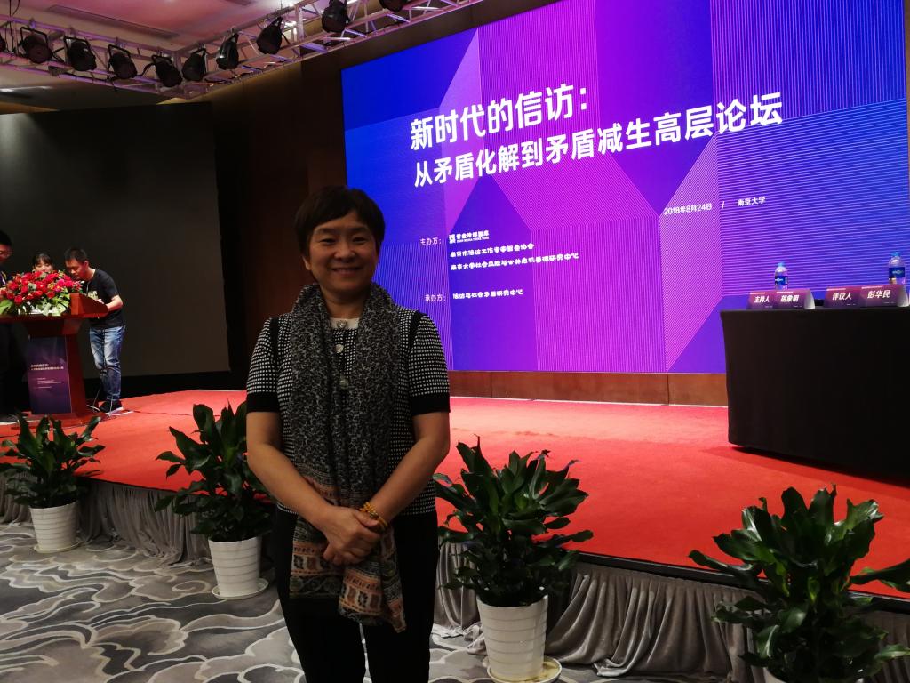 2018年8月24日,由紫金传媒智库、南京大学主办的“新时代的信访:从矛盾化解到矛盾减生高层论坛”在南大召开。南京大学党委、江苏省政府、省信访局、南京市委领导,以及来自国家行政学院、南京大学、国家与地方治理研究会、清华大学、复旦大学、国家信访局、江苏省信访局、上海市信访办等科研机构和实务部门代表共100余人出席论坛。我校土地法制研究院院长陈小君教授应邀参会,并以《北京市城乡土地信访困局及其制度应对》为题做主题报告。
