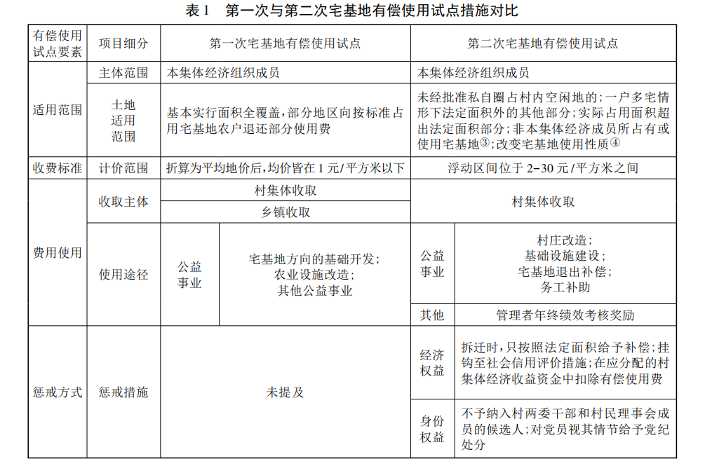 (一)历史维度:两次宅基地有偿使用改革试点的对比实践