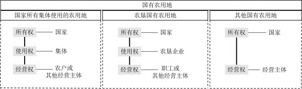 从国有农用地经营利用实践和土地权属制度现行规定出发,应厘清国有农用地上所有权、使用权、经营权的内涵和外延、实现路径和权能构造,以建立清晰的权利体系,促进和保障现代农业发展。