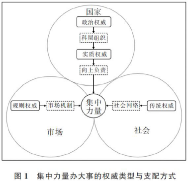 权威是资源配置的基础。不同的权威意味着不同的资源支配方式和效果。在已有的研究中,集中力量办大事往往突出政治权威,强调中国共产党的领导和各级政府的主导作用,运用政治力量一竿子插到底,通过政治动员的方式集中力量办大事。1978年经济体制改革以来,市场领域、社会领域逐渐“漂离”国家控制,形成了国家、市场与社会的三角关系,它们在各自的领域有着其自身的权威基础及其支配方式。