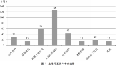 图1展示了闲置土地案件的争议事由,其中相对人对土地闲置原因提出异议的案件数量最多,共有126件,占案例总数的57.3%。因此有必要立足于有效案例,从纷繁复杂的司法实践中提炼标准,为土地闲置“政府原因”的认定提供指引。