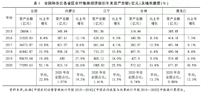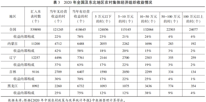 党的十八大以后,在一系相关政策的推动下,“十三五”期间我国农村集体经济发展提速较快,但存在发展不平衡问题,特别是偏远地区农村集体经济发展因发展环境不利、发展基础薄弱、现代生产要素紧缺等因素的限制,成为发展中的薄弱点和攻坚难点。东北地区是我国粮食主产区,耕地面积较大,农业现代化水平相对较高,粮食总产量超过全国的四分之一,为保障国家粮食安全做出突出贡献。但是,东北地区的农村集体经济发展却相对滞后。以东北地区为例,研究我国偏远地区农村集体经济发展问题,具有典型的参考意义。
