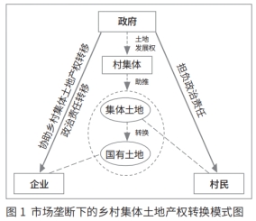 关系产权的运作包含了象征性产权主体影响下的治理格局演变,在此可以将象征性产权当作一种认同范畴的产权,这是建立在产权难以完全清晰界定的现实基础上的。这类象征性产权主体在产权结构中具有展现关系纽带的重要象征性意义,表现为其对剩余地权的占有及其与制度环境之间的特殊关系,能为主体产权转换提供合法性基础。在我国现实的政治经济背景下,象征性产权主体主要包含政府和村集体组织,其依托社会制度环境和公共名义实现了地权上的直接或隐形占有。由于政治权利高于产权权利,象征性产权主体即便不属于产权界定中的实际主体,也仍然能够依托制度安排、权利配置等手段在土地产权转换中发挥实质性作用。