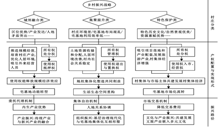 2.研究发现城郊融合类村庄住房抵押模式的产权配置与委托代理机制为主的产权实施机制匹配,推进宅基地功能转型,激活内生产业优势,形成产业融合的产业振兴路径。集聚提升类村庄旧村改造的产权配置与集体自治机制为主的产权实施机制匹配,实现了基层治理现代化与宅基地集体化互相形塑的组织振兴路径。特色保护类村庄宅基地入市的产权配置与市场交易机制为主的产权实施机制的匹配,实现了多元主体共建下文化与产业振兴路径。