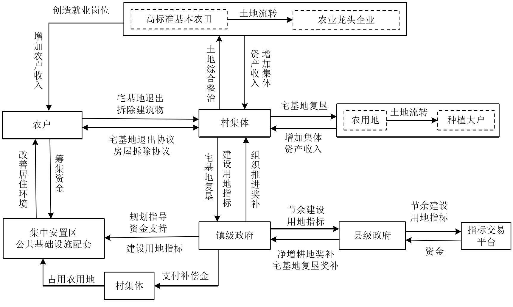 摘要:农村宅基地退出对提高宅基地集约利用水平、改善农户居住环境以及推动乡村振兴具有重要现实意义。本文从公共治理的视角研究治理环境和治理结构对宅基地退出的影响,并选取江苏省阜宁县宅基地退出典型村庄进行案例分析。结果表明:国家层面的户籍制度改革、宅基地确权颁证和“三权”分置构成了促进宅基地退出的产权制度环境,省、市地方政府的建设用地增减挂钩指标交易和国土空间规划调整为宅基地退出提供了资金和用地保障的政策环境,村庄资源禀赋条件与内部治理结构共同决定宅基地退出的具体模式。宅基地退出治理结构从治理力量上看表现为“科层+市场”的混合结构,从主体上看则有县乡政府、村集体和农户,各类主体在政府规制和市场机制作用下协商、谈判,达成一致的行动方案与制度安排,实现宅基地退出内部治理。宅基地退出集中安置的“整村就地”、“整村异地”和“部分就地”等模式整体上都提高了土地利用效率,促进了集体经济发展和农民福利增加,但不同安置模式之间在交易费用、土地利用、收益分配以及农户福利变化等方面存在显著差异,这些都与各自所处的治理环境和治理结构直接相关。因此,提高宅基地退出治理绩效,在治理环境上要继续深化农村宅基地“三权”分置改革和户籍制度改革,完善城乡建设用地增减挂钩节余指标的市场交易机制;在治理结构完善上要充分发挥政府和市场的作用,降低宅基地退出交易成本。