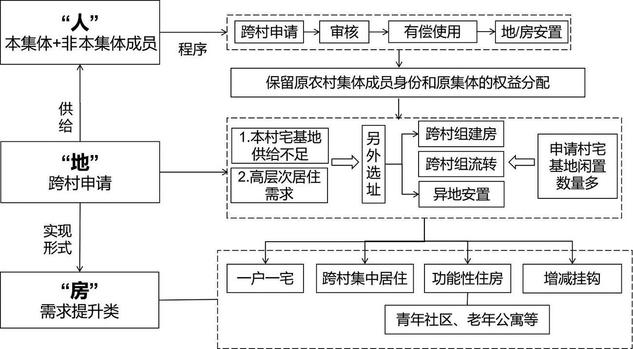 现有存量和增量宅基地不足或资源禀赋较差的村庄,指向供地的另一条路径——“跨村申请”,即另外选址,通常以跨村组建房、异地安置、跨村流转的形式实现土地供给。住房保障形式多以“需求提升类”来呈现。