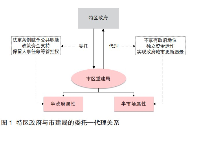 第一,在城市更新领域,香港特区政府与市建局形成了委托—代理关系,并将市建局塑造为“半政府—半市场”机构。特区政府通过赋予市建局维护公共利益的职责和运作公共资源的权力,委托市建局专责香港的城市更新事宜,使其成为“半政府机构”。同时,市建局在代理城市更新事务的同时,被允许独立资金运作和适当盈利,具有“半市场属性”。