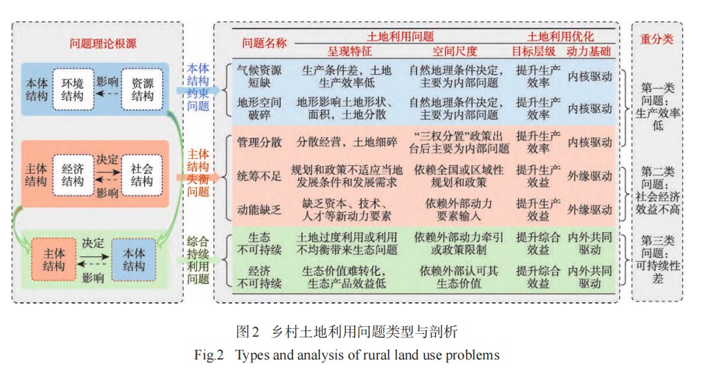 乡村地域系统是乡村各项要素组合为一定结构、表现出特定功能的空间体系,系统结构在组织要素、显化功能方面发挥重要作用,是认知乡村转型发展微观机理与宏观功能的重要衔接点,也是解析乡村土地现实问题的重要切入点。本文基于乡村地域系统“要素—结构—功能”理论认知框架,以系统本体结构和主体结构为切入,解析当前乡村土地利用的主要问题。