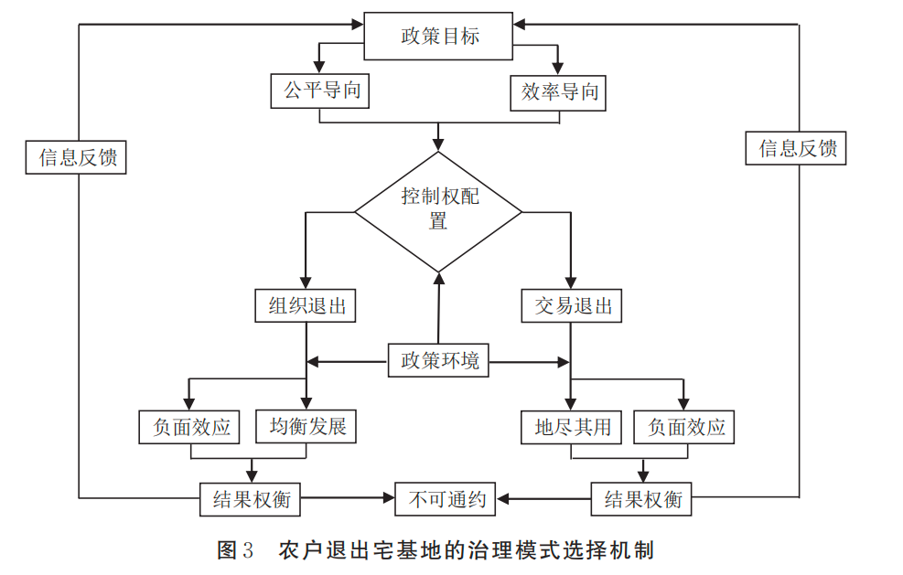 中国的宅基地制度兼具居住、财产和社会保障等功能,各地人口与土地资源匹配情况差异明显,在全国推行统一的宅基地退出治理模式非常困难。因此,各地要坚持实事求是原则,全面分析本地的资源状况、现实需求与制度环境,确定农户退出宅基地政策目标的价值导向是公平优先还是效率优先,或者是一者优先、兼顾其他。明确后再制定具体的政策目标,合理配置控制权,形成与本地政策目标匹配度最优的宅基地退出治理模式。