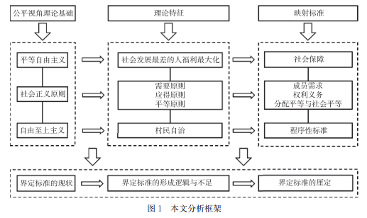 按照自由至上主义的观点,农村集体经济组织成员身份的界定标准则不应该由政府制定,只需要由村集体以合法程序界定成员身份即可,映射至成员身份界定即程序性标准。据此,本文提出如下分析框架,如图1。