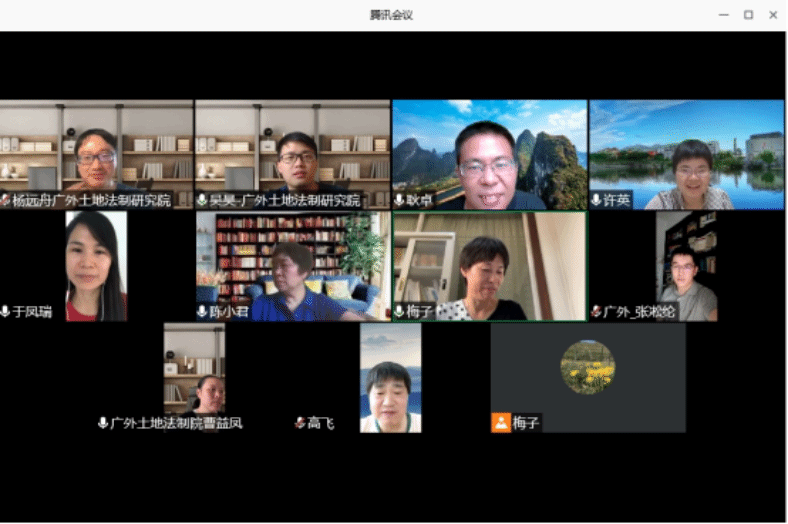 2020年5月28日,十三届全国人大三次会议表决通过了《中华人民共和国民法典》,宣告中国“民法典时代”到来。民法典颁布后,学习宣传民法典成为当前的重要工作之一。习近平总书记明确提出要广泛开展民法典普法工作,加强对民事法律制度的理论研究。基于此,2020年7月2日,由广东外语外贸大学土地法制研究院、国家社会科学基金重大项目“新时代中国特色土地管理法律制度完善研究”(18ZDA151)课题组、“乡村振兴战略法治保障研究”科研创新团队主办的“土地法制前沿论坛(第十五期):学习《民法典》、谈心得体会”系列研讨会之一以远程视频的形式召开。土地法制研究院陈小君教授,院长高飞教授,法学院副院长、广东法治研究院副院长耿卓教授,土地法制研究院张凇纶副教授、于凤瑞副教授、曹益凤助理研究员、杨远舟助理研究员、吴昊助理研究员、许英博士后研究人员等参加研讨会,会议由土地法制研究院副院长于凤瑞副教授主持。