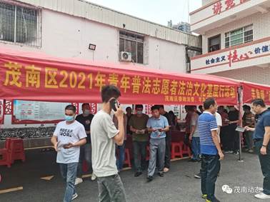 为认真学习贯彻习近平法治思想,深入开展“我为群众办实事”实践活动,4月29日下午,茂南区委政法委学史力行送法下基层,在羊角镇南香村委举办2021年青年普法志愿者法治文化基层行宣传活动。