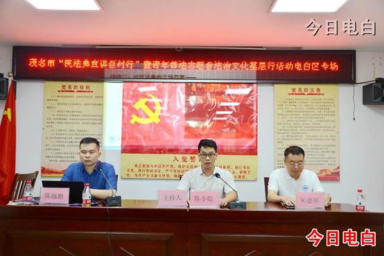 5月13日,茂名市“民法典宣讲百村行”暨青年普法志愿者法治文化基层行活动电白区专场在水东街道新湖社区举行,活动邀请了广东外语外贸大学土地法制研究院法学博士陈越鹏作“中国《民法典》的时代意义与若干新制度要点”的专题宣讲。茂名市法学会秘书长陈小聪,电白区委政法委,公检法司,区整治办、禁毒办、扫黑办,水东街道干部,新湖社区群众,约100人参加活动。