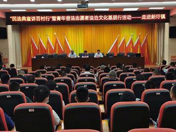 5月25日上午,由广东省法学会为指导单位,中共惠州市委政法委、市法学会主办,中共惠阳区委政法委、区法学会、新圩镇人民政府和平潭镇人民政府共同承办的“民法典宣讲百村行”暨2021年青年普法志愿者法治文化基层行活动在惠阳区举行,据悉这是该活动在惠州之行的第二站。