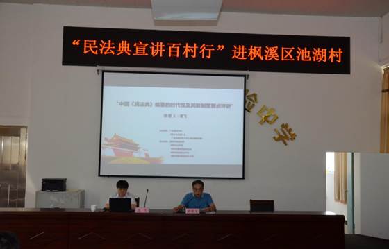 根据青年普法志愿者法治文化基层行活动“突出民法典的宣传,让民法典走到群众身边,走进群众心里”的要求,省法学会联合《民主与法制》社、广东外语外贸大学土地法制研究院,到我市开展“民法典宣讲百村行”活动。