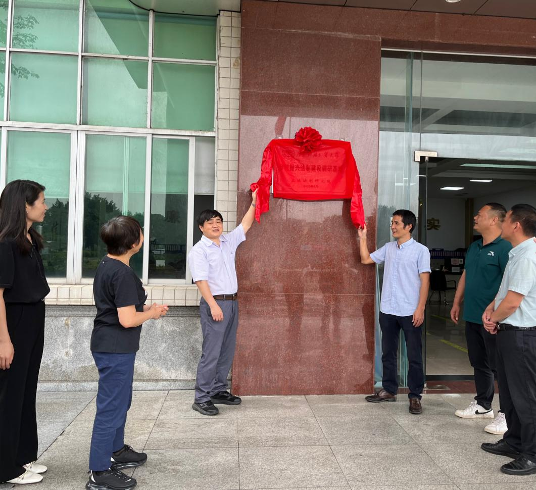 座谈会结束后,广外土地法制研究院高飞院长和龙岗村曾宝乾书记一起为“乡村振兴法制建设调研基地”揭牌。接下来,研究院将与龙岗村深入交流具体合作框架,展开实质性的长期有效合作。未来研究院还将在其他地区选取有代表性的农村,建立“乡村振兴法制建设调研基地”,共同致力全面推进乡村振兴。