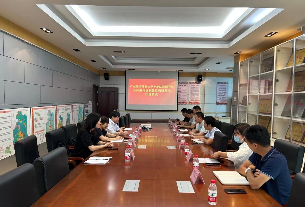 5月24日,广外土地法制研究院在广州市白云区钟落潭镇龙岗村举行“乡村振兴法制建设调研基地”挂牌仪式。广外云山法学工作室首席专家、土地法制研究院名誉院长陈小君教授,广外土地法制研究院院长高飞教授、副院长于凤瑞副教授,龙岗村党委书记曾宝乾、副书记曾祥新出席仪式,广外土地法制研究院、龙岗村村委会部分代表参加仪式,仪式由龙岗村村委委员曾宛雯主持。