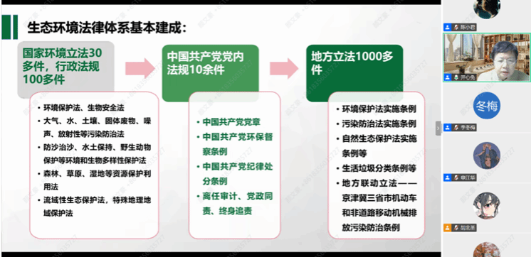 2026年4月21日,由广东外语外贸大学法学学部、法学院、土地法制研究院、广东法治研究院联合主办的“云山法学大讲堂”第93讲在线上顺利举行。本次讲座以“生态环境法典的理论与实践创新”为主题,邀请全国人大常委会委员、环境与资源保护委员会副主任委员、中国法学会副会长、环境资源法学研究会会长、全国人大常委会生态环境法典编纂领导小组成员、生态环境法典编纂工作专班负责人吕忠梅教授担任主讲人。讲座由广东外语外贸大学法学学部主任、云山(法学)工作室首席专家、土地法制研究院名誉院长陈小君教授主持。