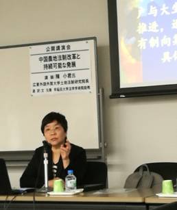 3月7日下午,在东京早大法学院,陈小君教授以“中国农地法制改革与可持续发展”为题作了两个多小时的主题演讲报告会,在全面总结我国农地法制变迁及改革背景的基础上,重点剖析了农地三权分置改革的政策意蕴、基本构造,进而结合我国民法典物权编修订提出未来立法的宏观思路和具体建议。本次演讲引起与会专家的浓厚兴趣,其就中日两国的农地法律制度进行了热烈、深入地讨论。江户川大学校长小口彦太教授,早稻田大学濑川信久教授、文元春教授、邹庭云助教以及多名法学博士生,立命馆大学高村树人教授,专修大学饭考行教授,拓殖大学长友昭教授,富山大学高桥满彦教授,神奈川大学东乡佳朗教授,高冈法科大学上地一郎教授以及株式会社农林中金综合研究所龟冈广平研究员均结合主题演讲内容进行发言,陈小君、耿卓两位教授就日本学者们的提问作了详尽解答和讨论,广受好评。当天上午,陈小君教授一行与楜泽能生院长就进一步加强学术实质性交流、留学生教育等进行了深入探讨。