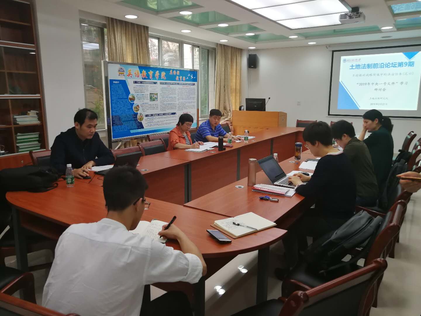 2019年3月21日,由土地法制研究院、国家社科基金重大项目“新时代中国特色土地管理法律制度完善研究”课题组、“乡村振兴战略法治保障研究”科研创新团队主办的“土地法制前沿论坛(第九期):乡村振兴战略实施中的法治任务(之六)——‘2019年中央一号文件’学习研讨会”在广东外语外贸大学北校区8教109会议室举行。土地法制研究院院长陈小君教授、副院长高飞教授,张保红教授、于凤瑞副教授以及博士后研究人员许英副教授、孙聪聪博士等参加研讨会。会议由于凤瑞副教授主持。
